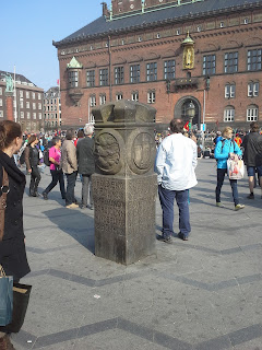 I love the iconography of this above the door to the city hall - a chicken brooding over her chicks; the social image of support and care.